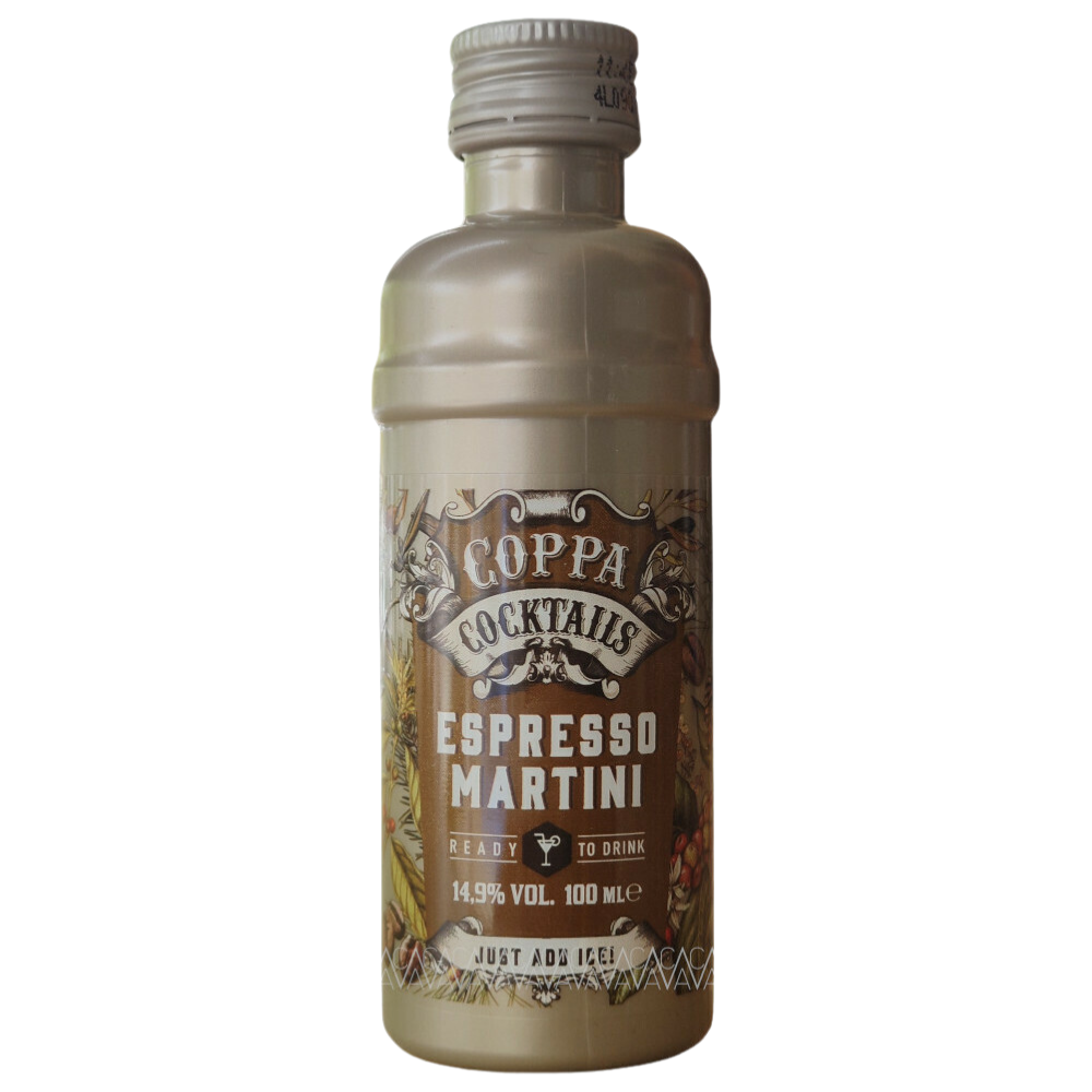 Το φημισμένο Espresso Martini Cocktail (14.9% alc.) από τη σειρά έτοιμων κοκτέιλ της Coppa. Σερβίρετε σε ποτήρι martini χωρίς πάγο, προσθέτετε 3-4 κόκκους καφέ για γαρνιτούρα και απολαμβάνετε!