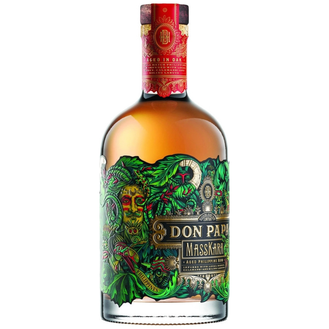 Γνώρισε το Don Papa Masskara, το ξεχωριστό ρούμι των Φιλιππίνων που παλαιώνει σε αμερικανικά δρύινα βαρέλια bourbon και εμπλουτίζεται με τοπικά αρώματα από calamansi, siling labuyo chili και μέλι από το δάσος Kanlaon. Με χρυσαφένια απόχρωση και αρώματα βανίλιας, ζαχαρωμένων φρούτων και εσπεριδοειδών, συνδυάζει γλυκύτητα με διακριτική πικάντικη ένταση. Στο στόμα αναδεικνύει το πλούσιο σώμα του και προσφέρει μακρά, σύνθετη επίγευση. Ένα αποστακτήριο φόρος τιμής στη γιορτή Masskara και στην ψυχή της Sugarlandia.