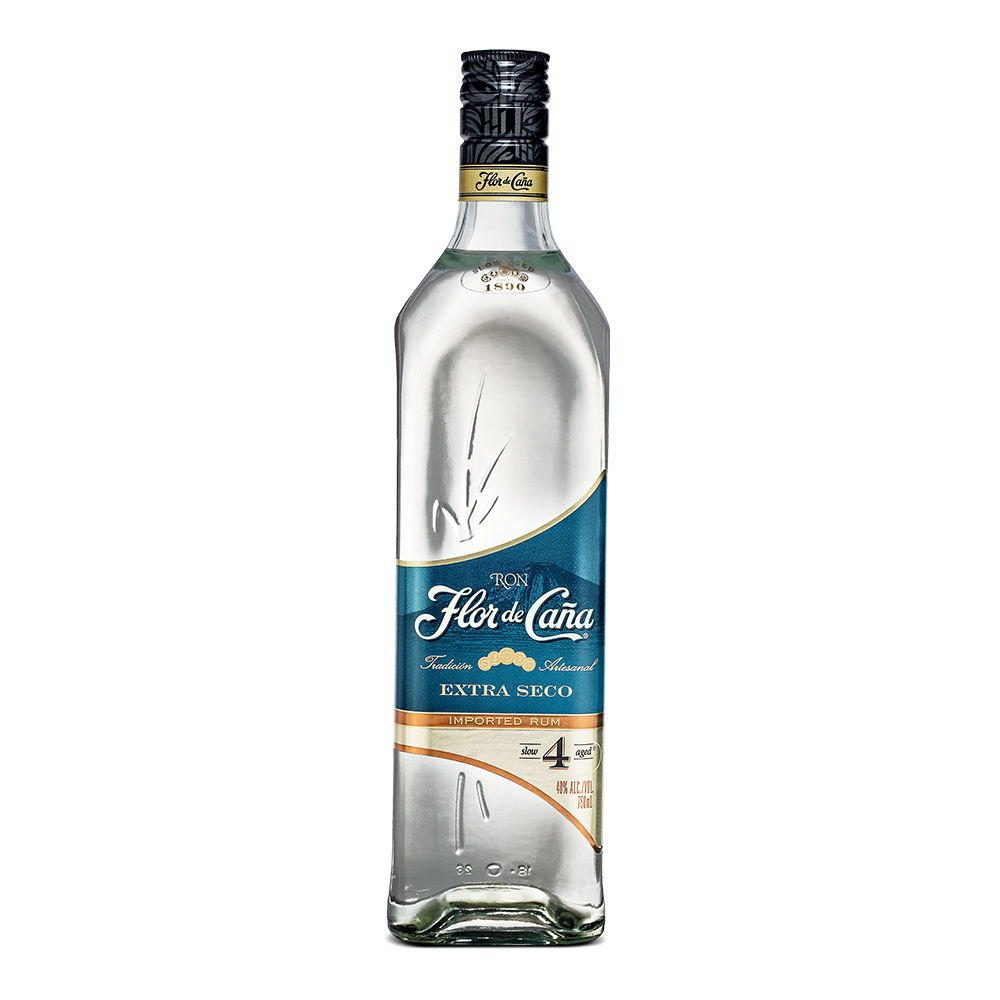 To Flor de Caña 4 Extra Seco είναι ένα premium λευκό ρούμι από τη Νικαράγουα, παλαιωμένο για 4 χρόνια σε μικρά ξύλινα βαρέλια. Συνδυάζει νότες από γλυκά αμύγδαλα και βανίλια με διακριτικά αρώματα λευκής σοκολάτας και ελαίων πορτοκαλιού, προσφέροντας ξηρή και αρμονική επίγευση.