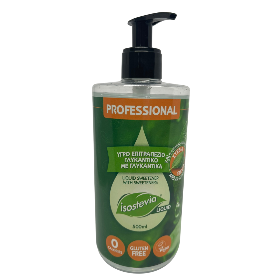 Το ISOSTEVIA LIQUID PROFESSIONAL είναι γλυκαντικό από το φυτό στέβια σε υγρή μορφή, με μηδέν θερμίδες, vegan και χωρίς γλουτένη. Έχει εξαιρετική γεύση και διαλύεται εύκολα και γρήγορα σε ροφήματα (ζεστά ή κρύα), καφέ, τσάι και χυμούς. 1 πάτημα της αντλίας(μερίδα 1ml) αντιστοιχεί σε 1 κουταλάκι ζάχαρης (5gr). Iδανική λύση για επαγγελματίες HO.RE.CA.